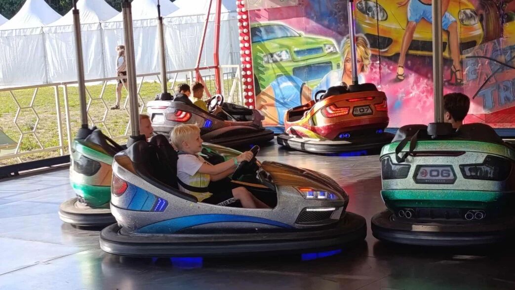 wesołe miasteczko z kolejką górską, autodrom, karuzele